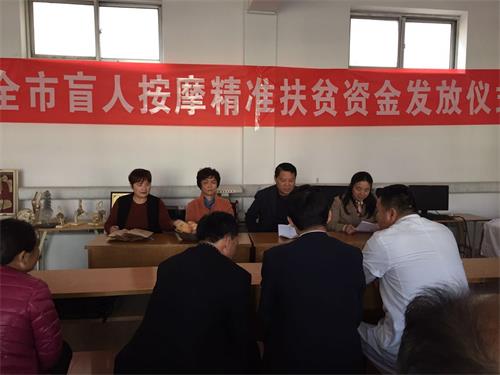 10月31日,日照市盲人按摩精准扶贫资金发放仪式在市盲人按摩指导中心举行。为符合条件的8家贫困盲人开办的按摩机构每家发放8000余元的创业扶持资金。