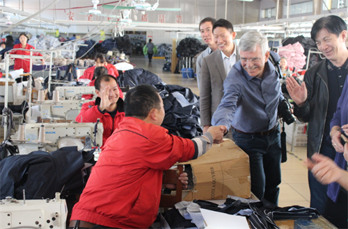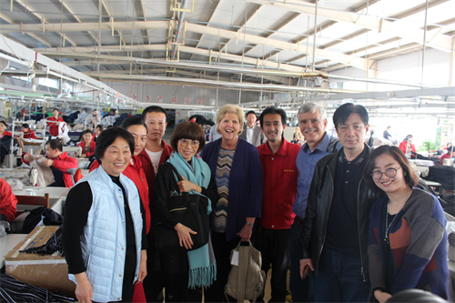 昇望公司客人与莒县福利服装厂辛兴芬厂长合影