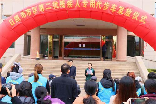 2017年11月29日上午,日照市残联举行日照市区第二批残疾人专用代步车发放仪式,对市区禁行区内第二批符合条件的肢体残疾人发放残疾人专用代步车。日照市残联党组书记、理事长金光明,日照市残联党组成员、副调研员闫娜,日照市残联12385呼叫中心、综合服务中心全体人员及各区县残联负责同志及工作人员80余人参加了发放仪式。发放仪式上,日照市残联党组书记、理事长金光明为第二批符合条件的17名肢体残疾人发放了残疾人专用代步车。