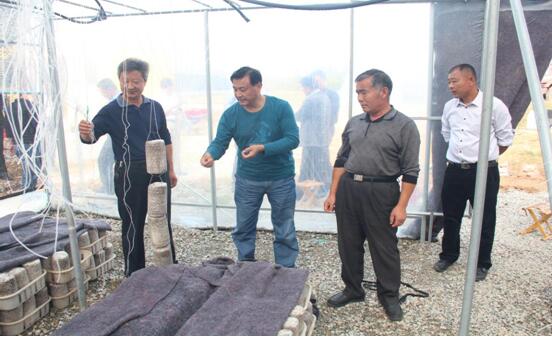 区残联领导到陈疃镇残疾人木耳种植大棚户中实际查看种植情况并和技术人员一起给于技术指导